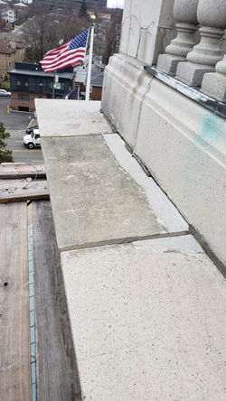 Facade-Masonry Restoration, 1928 Original Federal Greek Revival: The project consists of an in-depth study of issues surrounding the failure of structural elements, restoration of cast stone columns, capitals, pediments, portico and column base and clock tower restoration of cornices requiring replacement.
